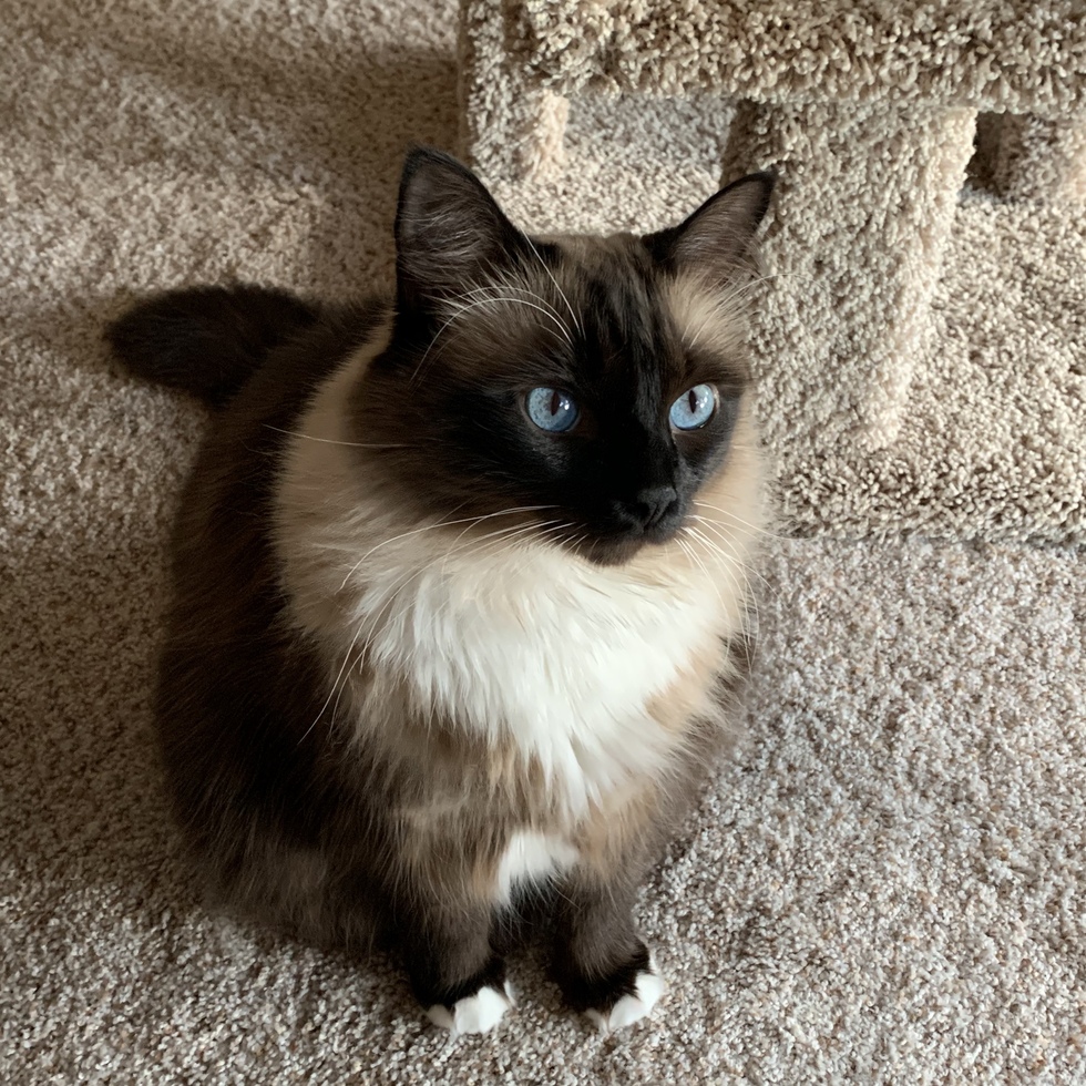 Your Pet's Bio/StoryJameson chose me on 5 Dec 2019. At 5 years old his 1st family bravely let him be adopted through DDFL in Castle Rock. He struggled with aggression, anger and anxiety issues. In the past 6 months he has been exchanging them for confidence & happiness. It’s been beautiful watching him bloom, be happy, and enjoy his best kitty life. My guy waits at the door for me to come home & greets me with purrs and snuggles. He charms everyone with his gorgeous baby blues & antics. He loves to play, supervise ALL the birds from his cat tree by the window, and do the classic Ragdoll flop when it’s time for serious napping. We were meant to be together & he knew it when he first saw me. He is king in his castle here & we both love it!