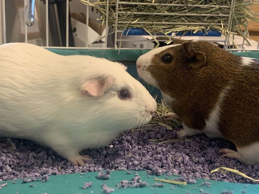 Your Pet's Bio/StoryI just adopted Jasmine (white) and Lilly (brown and white) this April in the midst of the pandemic. They were 4 month old pigs at the time DFL said they needed a home, so I decided to take them in through the foster-to-adopt program. They have been a great addition to my family, and I love hearing their little squeaking noises when they’re happy! I also love when they get what I call “pig zoomies,” which is when they run around their cage really fast. I’m so happy I was able to give them a good home!