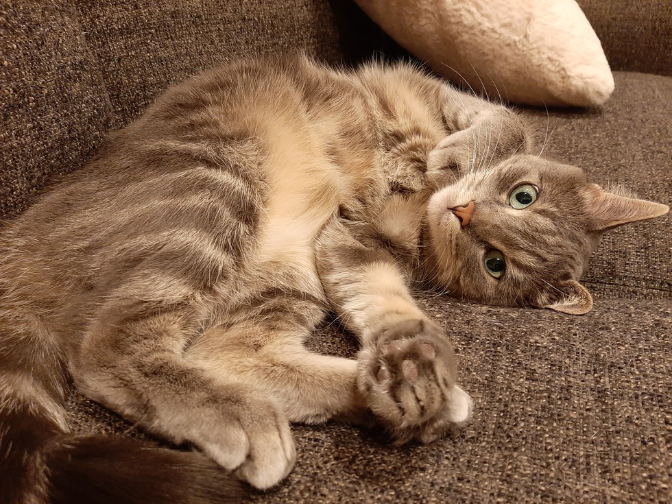 Your Pet's QuirksSometimes meows with no sound and is obsessed with eating grass (when her mom lets her outside!)