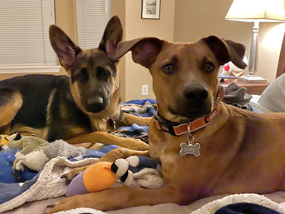 Your Pet's Bio/StoryLeia is a purebred German Shepherd that came home when she was 9 weeks old. Luke came home through a rescue when he was near 1 year old. They were instantly two peas in a pod. They are both rock biters, they both eat grass and mud, they are both diggers, and they both love fiercely.