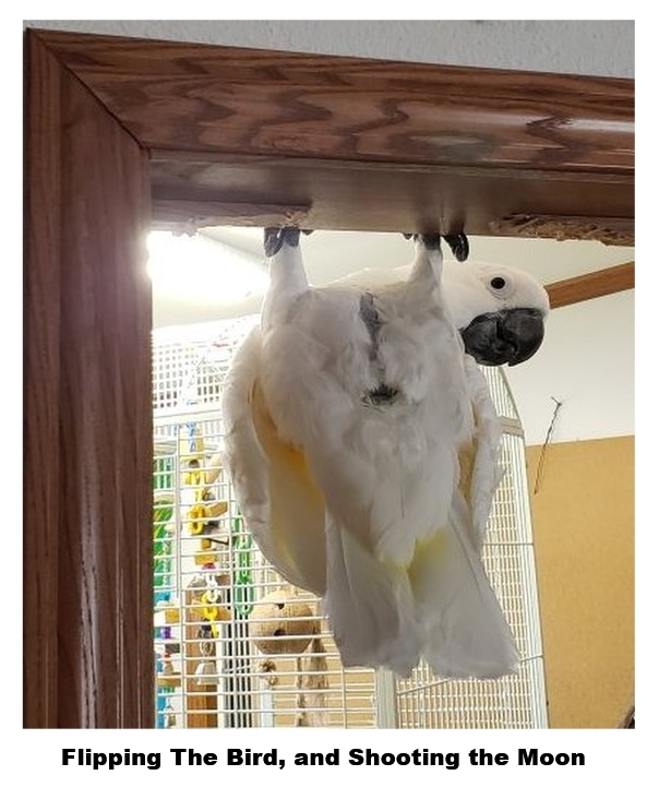 Your Pet's Bio/StoryWe adopted Oz in 2009 and he's been a happy boy since. He loves to climb on the shower perch every 4 nights and get 2-4 showers to keep his tooie dust down. He has a Fortress of Solitood to play in, and lots of toys. Very intelligent! Also see "I Am Oz - Oz the Cockatoo" on Facebook.