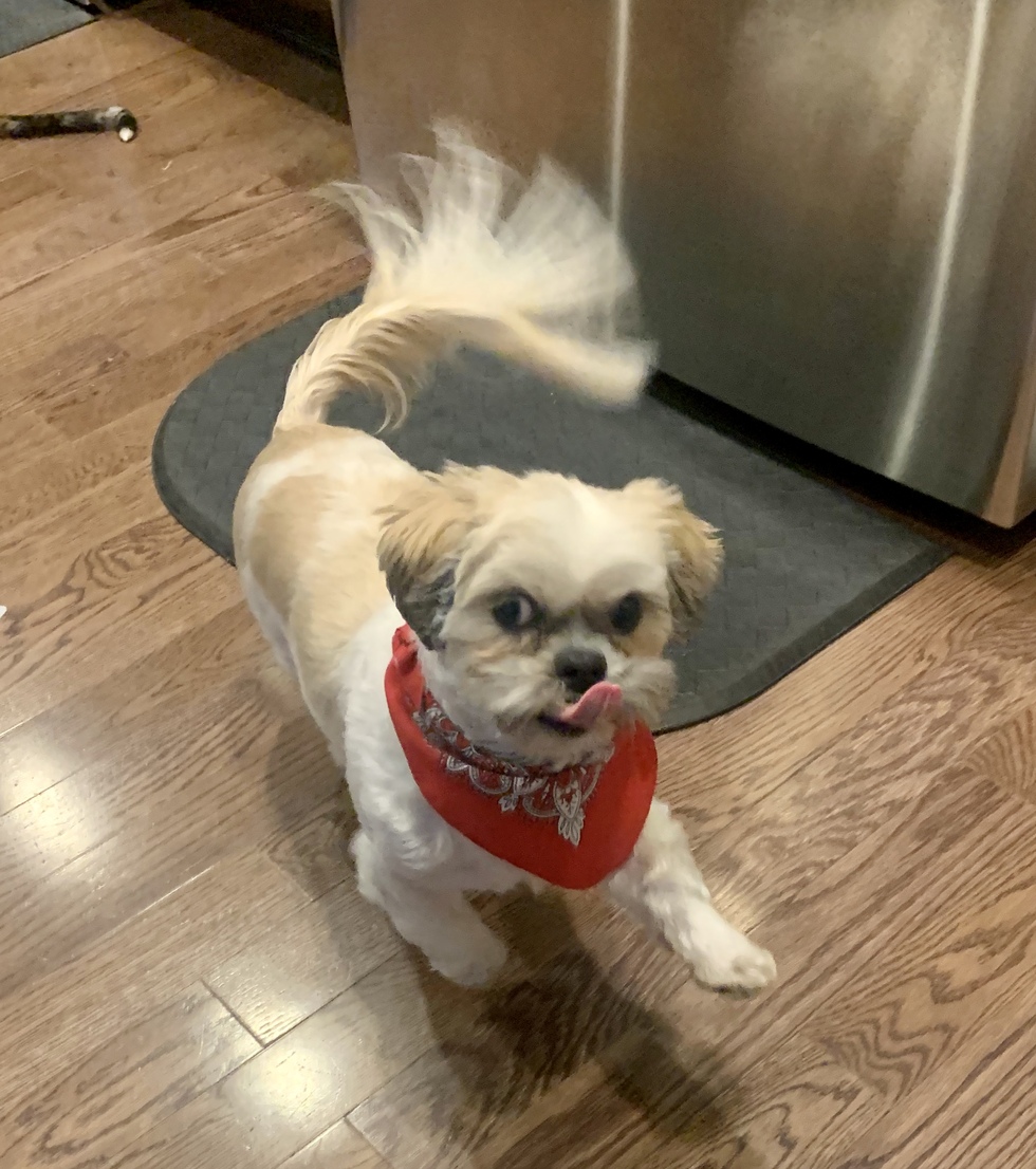 He's "special" loves his babies, his bandana and snuggles. One of happiest pups I've ever encountered.