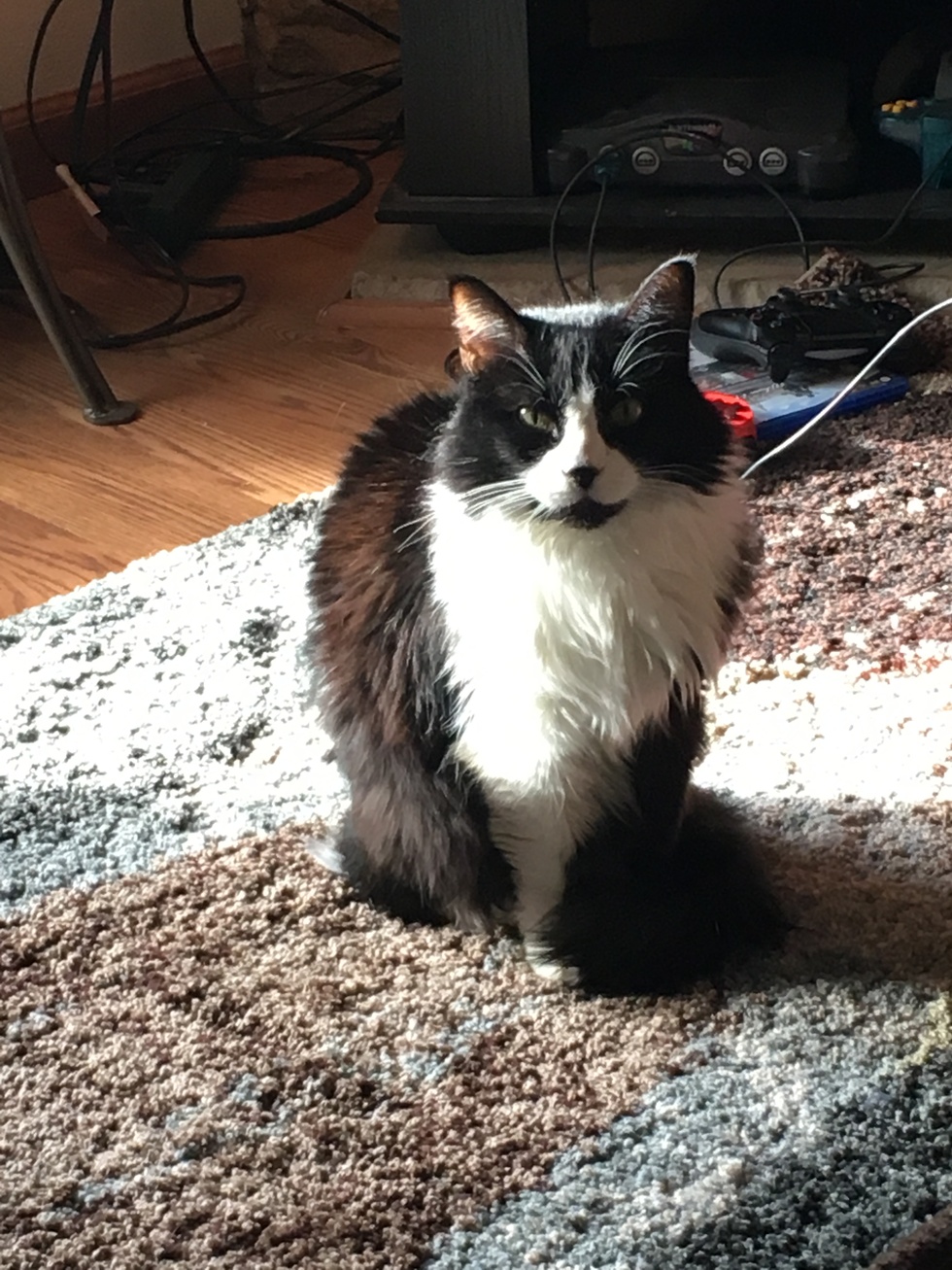 Your Pet's Bio/StoryHey was turned into a shelter At about 1 year old because he was too needy and ornery. My husbands previous cat had just passed and he was looking for a furry buddy. The second he walked in to where the cats were held at the Dumb Friends League, a cat ran to the window, paws on the glass meowing at him. A few minutes later, he looked at me and said ‘I must have him!’ They’ve been inseparable since then, and it’s been almost 12 years!