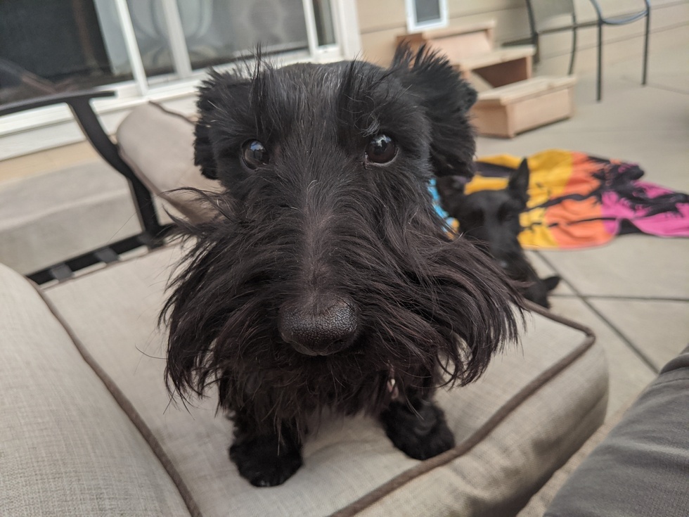 Your Pet's Bio/StoryMo aka Mollie is a rescue from here in Colorado. Her and her "husband", were surrendered to a local rescue. I wasn't looking for 2 dogs, or a female dog, but how do you say no to that face? She is a 7 year old female Scottish Terrier. You can see her "Old man" in the background. He is an 8 year old Scottish Terrier and they are a bonded pair. This is Scottie heaven!