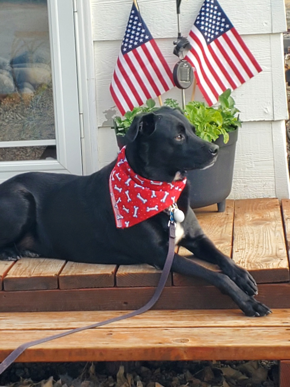 Loves to play! Standing guard over the homeplace. No rabbits allowed here!