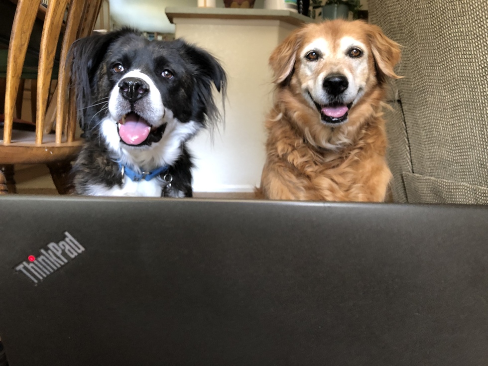 Your Pet's Bio/StorySeñor Easton was born in Tijuana in 2016, and was badly injured in a car accident almost two years later. A rescue group found him on the street, an open leg wound dripping blood and showing exposed bone. Easton was brought to Denver, where I met and adopted him shortly after his amputation surgery. He’s become my best friend, an unofficial mascot of my neighborhood and workplace, and has reinvigorated his elderly Golden Retriever Aunt Ginger. Easton has participated in three DDFL Furry Scurries, as well as a Colfax 5K and a Freedom Service Dogs Doggie Plunge. Nothing can stop this three-legged friendly-faced comedian — except the opportunity to beg for steak. Easton (and his Aunt Ginger) are shown in this photo, telecommuting as so many of us are during the pandemic.
