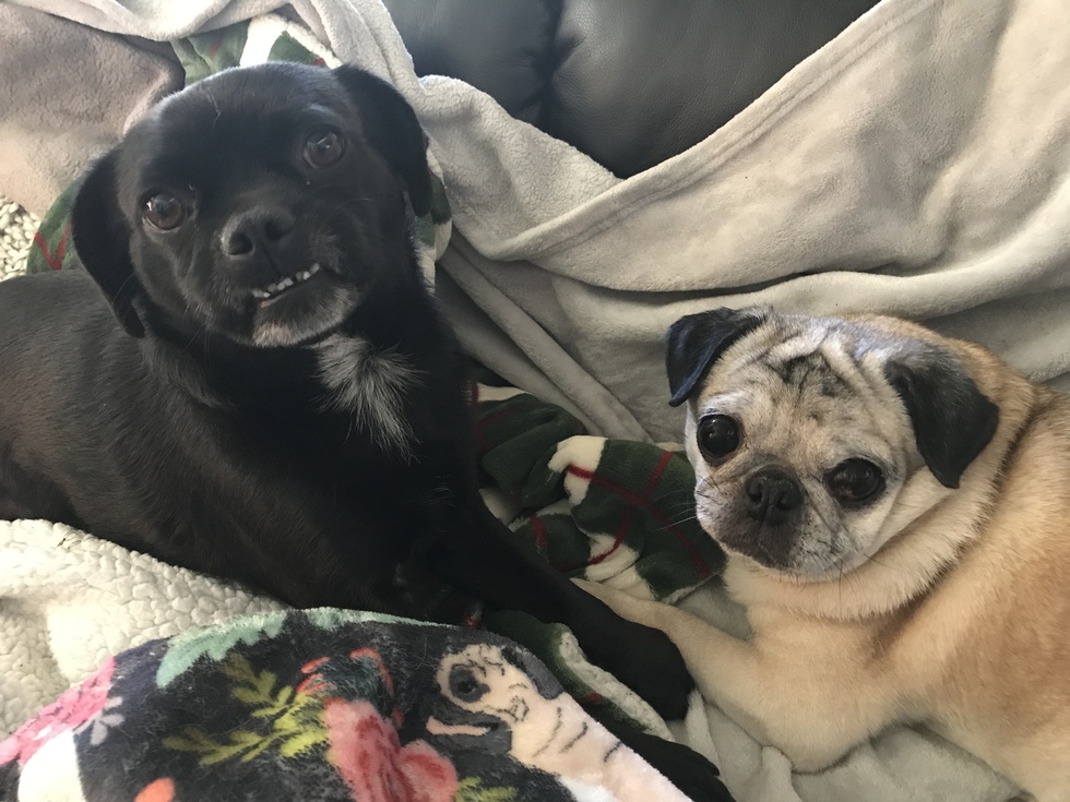 Your Pet's Bio/StoryBoth of these dogs were foster failures :) I was volunteering for a local rescue and fostering quite a bit and I just couldn't let these two go. Rose, the pug in the photo, was rescued by the Dumb Friends League in Denver. They are the best of friends and just love to be wherever I am in the house.