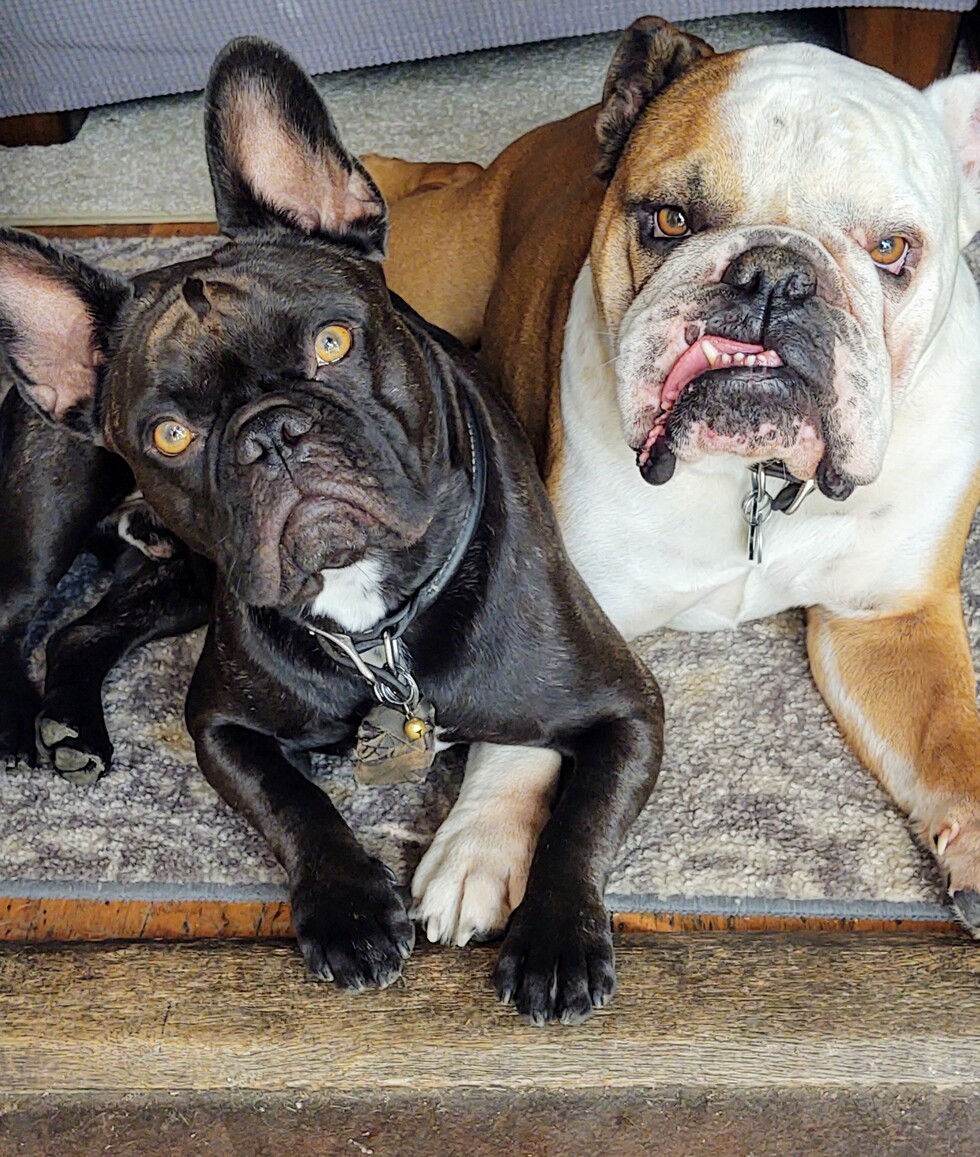 Shimmy the French bulldog is 2 and loves his big brother Zeb who is almost 5. Zeb is a rescue from Oklahoma. Zeb puts up with his little brothers shenanigans!