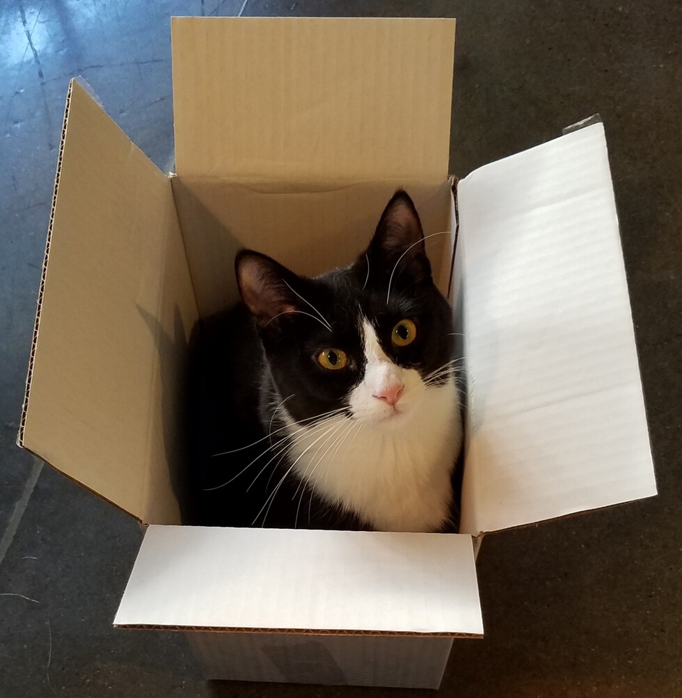 Your Pet's Bio/StoryMiss Lady Johnny June came to me as a tiny kitten last November out of no where when I was visiting a friend on a rural ranch in Texas. I brought her home back to Denver and now she is bigger than a Buick and just as delightful as can be! She LOVES hanging out in boxes and is incredibly loving!