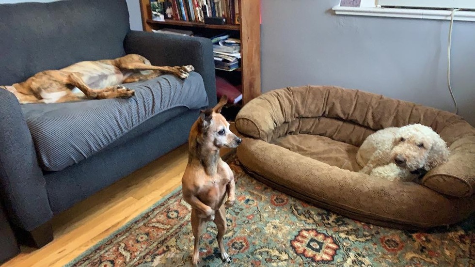 Your Pet's Bio/StoryMeet Noodle, (The Poodle) age 10- Myra (The greyhound) age 7 and oz (the Chi-weenie) age 13 Who came to our pack after my Dad died 3 years ago. It hasn't always been an easy adjustment, but they all did very well when, during quarantine, they became my office mates while i continued doing psychotherapy via zoom. I couldn't have done it without them