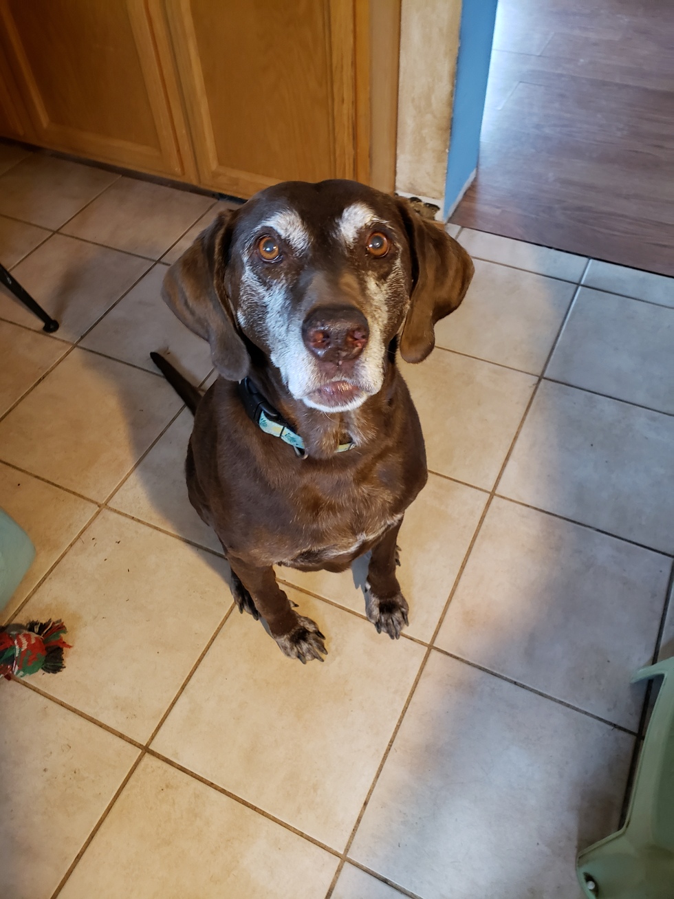 Your Pet's Bio/StoryNani was once pure chocolate and is now covered with marshmallow fluff in her older years. She loves long walks, snuggling on the futon with Netflix, and anything food or resembling food. She has the ability to hear food falling from the other end of the house. She loves shredding sticks and helping make garden mulch. She is everyone's friend, especially if they have treats. In her free time, she naps under the humans' desks while they work from home and dreams of treats.
