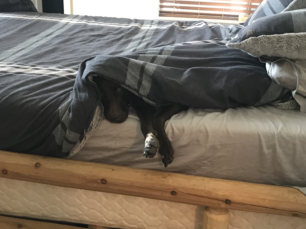 Your Pet's QuirksAlways wanting to snuggle under any cover, simular to a burrito