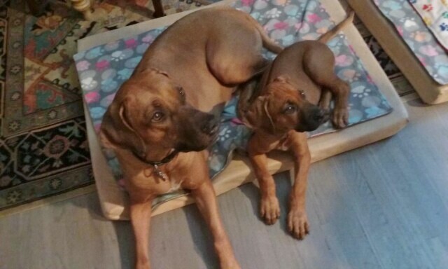 Your Pet's Bio/StoryBoth Ozy and Harry (a name duo that we consider hilarious...for people of a certain age) were born in South Dakota. Ozy was 6 when his older canine housemate died at 15. He seemed bereft and lonely so we decided to add a Ridgeback companion. For the first two months after bringing Harry home to Denver, Ozy looked at us and seemed to be silently saying "Why?" Harry, however, was an affectionate ball of energy and determined to win Ozy over. One of Harry's most successful strategies was to copy everything that Ozy did...thus the photo.