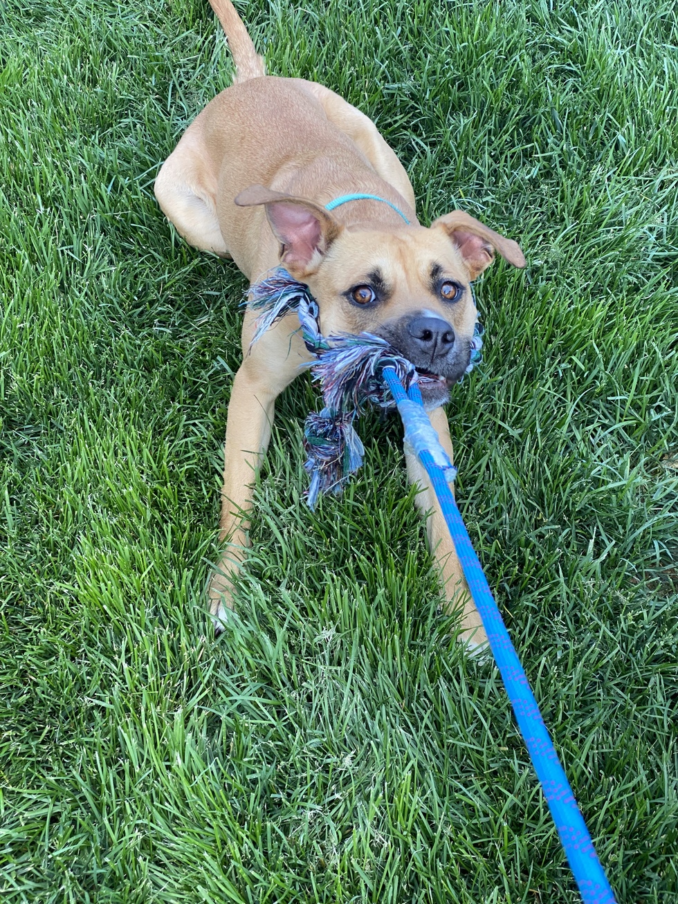 Your Pet's Bio/StoryHello friends, my name is Phoebe but my humans call me Phoeb too. I was found as a stray, but was rescued in February of 2021, and am just the sweetest! I am about 1.5 years old. I really really love to play tug, cuddle with my fish and my mom, sit pretty for treats and give the best awooooooo when I’m feeling impatient! Sometimes when I want to play I will crouch down real low to stalk my humans, and leap up and attack! They never see me coming. I am the best adventure dog and love hiking and chasing jet skis!