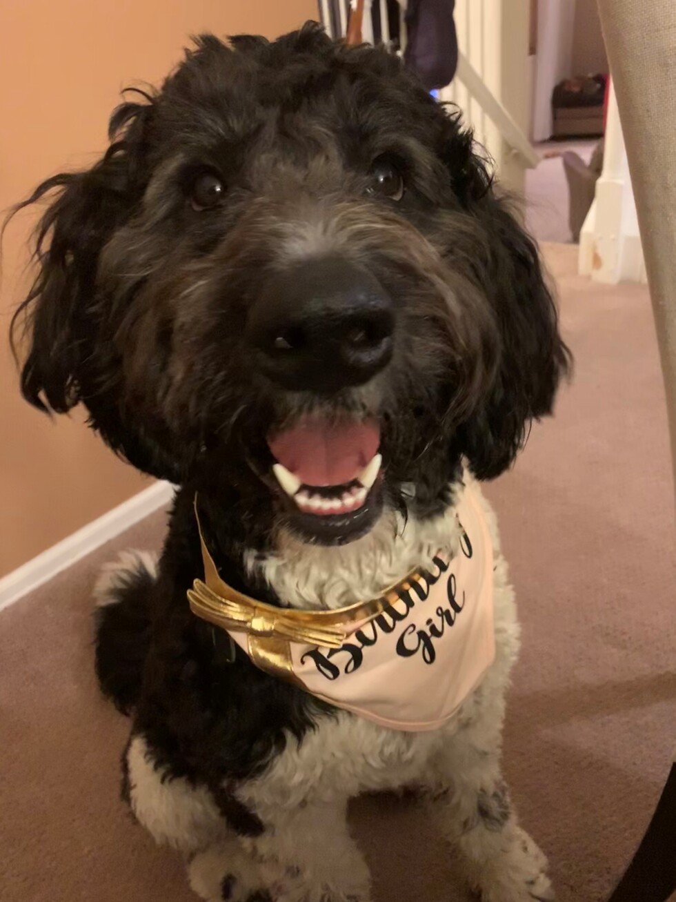 Your Pet's Bio/StoryWe got Maisy from a doodle breeder in Georgia - she would be way too hot in the south! She loves people (especially kids) to the point that she ignores the other dogs but greets all the humans at the dog park. Her favorite snacks are chicken, watermelon and fresh snow! She sleeps with all four paws in the air more than any dog we have ever known and is loved by the whole neighborhood. At 2.5 years old she has just enough puppy left to make anyone and everyone smile!
