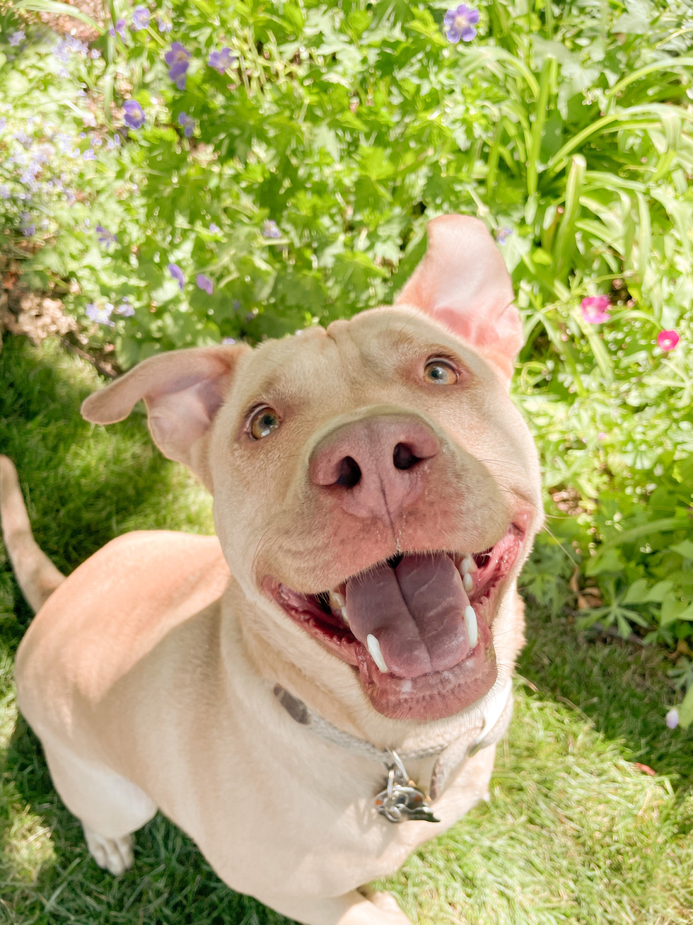Your Pet's Bio/StoryJuniper and her sister Mocha were abandoned in a crate and taken in by DDFL. Despite being the friendliest, kindest, and one of the best dogs in the shelter, because she is a pitbull she was not adopted for 3 weeks. When her mom adopted her she came out of her shell even more, and found the forever love she greatly deserved. Now she spends her days off leash, eating puppucinos, driving all over colorado, and giving lots of kisses. Juniper is still one of the kindest, gentlest, most energetic, and amazing dogs to exist!
