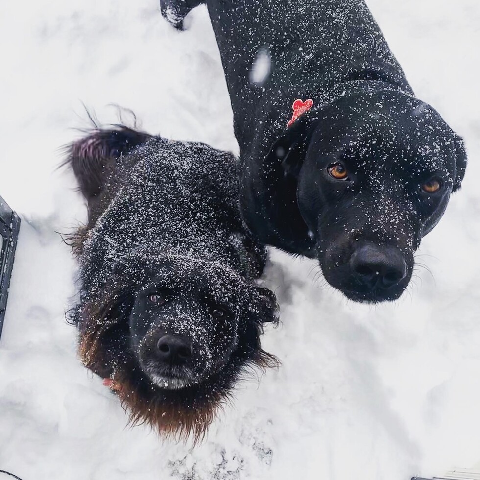 Your Pet's Bio/StoryBoth are rescues, found on the streets. Both love joining us for every adventure and fully believe they are human. This was the first experience with CO snow, and they were still figuring it out, but they've loved it ever since. These two are the absolute best of friends - they nap together, are fantastic road trip buddies, and hate to be apart.