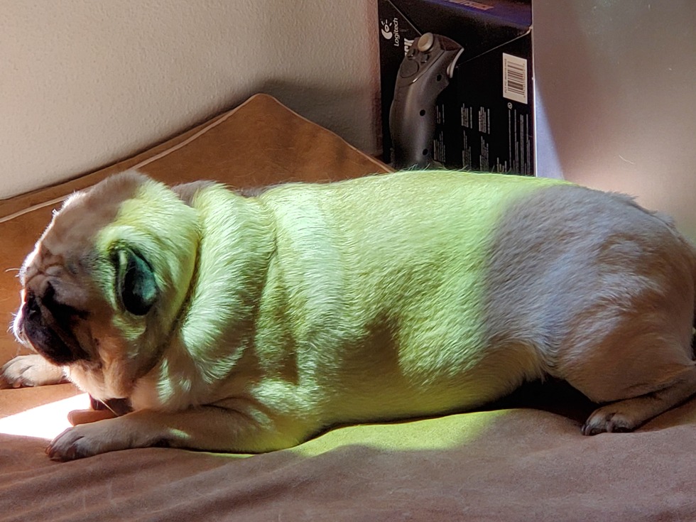 Mattie is my 4 yo pug, destined to be a couch potato. She knows when dinner time is here, and will show up in my office to remind me.
