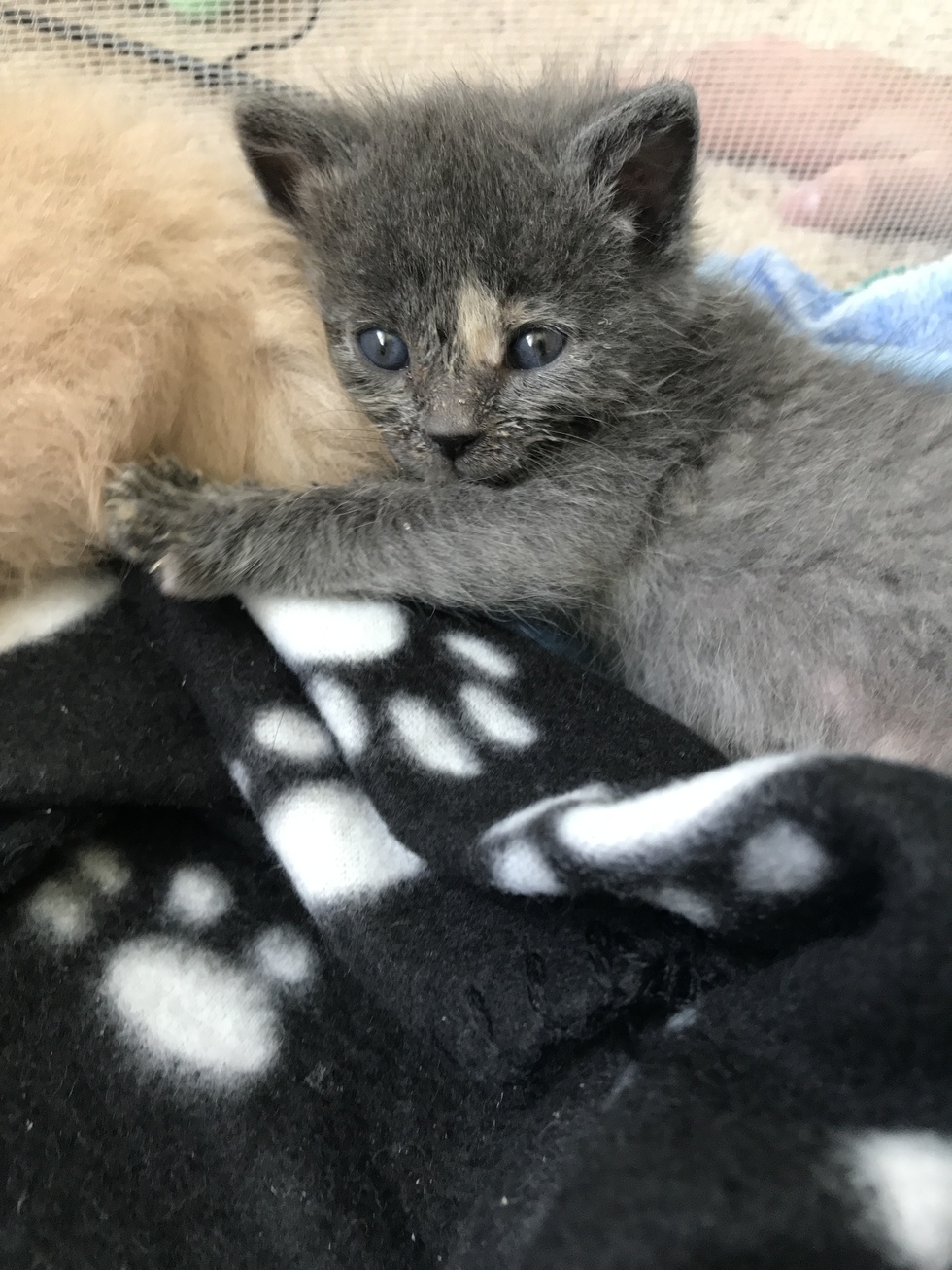 Your Pet's Bio/StoryRousey was found abandoned at only 2 weeks old, along with her two brothers. They were in a gutter in Pueblo and it was raining. She was dehydrated and in desperate need of care. Luckily our friend Amanda spotted them while doing her Amazon route. The three are thriving! My daughter adopted Rousey and my husband and I adopted the boys, Hobbes and Chunk (now named Marlin).