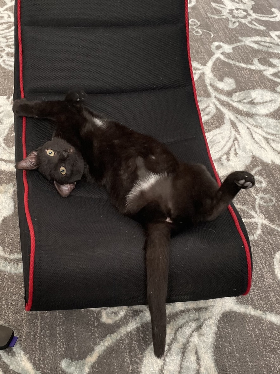 Your Pet's Bio/StoryChai, aka peanut or lil’ bit was adopted from the Dumb Friends League in the summer of 2021. She was just a tiny kitten, but her back leg had to be removed. It hasn’t slowed her down one bit and she is best friends with our 2 dogs and she’s still winning over our 2 cats!