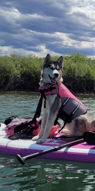 Your Pet's Bio/StoryGypsy is a 1year old Husky that is a foster to adopt from Jailbreak Husky Rescue. She found here forever home on June 6, 2022. She is a very calm Husky- which is unusual for the breed, who loves to go running at Wash Park, paddle-boarding, and hiking. She is living her best life!
