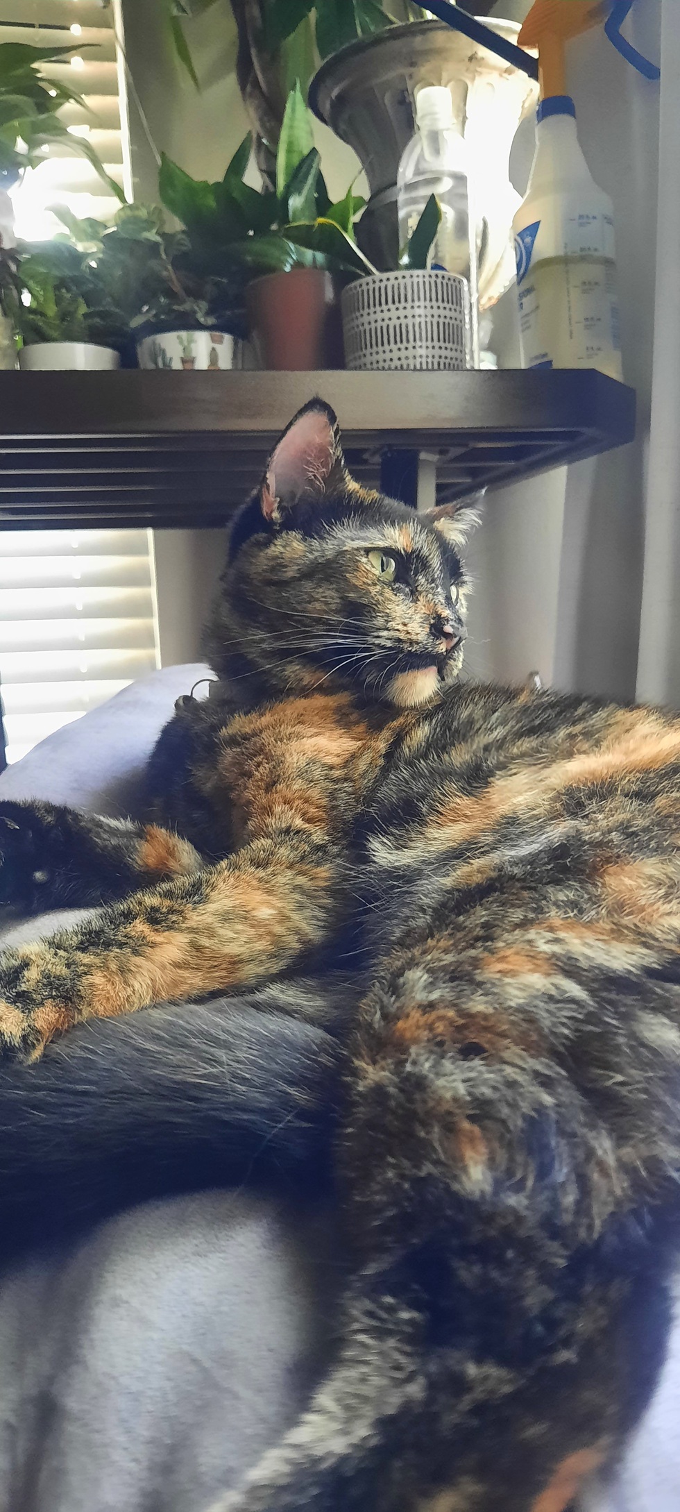 Your Pet's Bio/StoryOn the night of December 6th 2022 Miss Georgia appeared on my porch, cold and hungry. I held my front door open, and she trustingly walked inside. She devoured a quick meal of lunch meat and milk, and fell asleep on the couch - sleeping for several hours. At a visit to the vet the next day, the vet wrapped torn paw pads, noted a low blood cell count due to starvation, and estimated she was about 8 months old, no chip. She weighed only 4.8 lbs. The vet and techs kept commenting about what a "good little patient" she was. I agreed, she has a sweet manner about her that I'd not seen before. She had been part of a family, she had a home that she somehow lost. Today Georgia weighs 9.2 lbs. She loves chasing fuzzy balls and watching squirrels from her window perch.