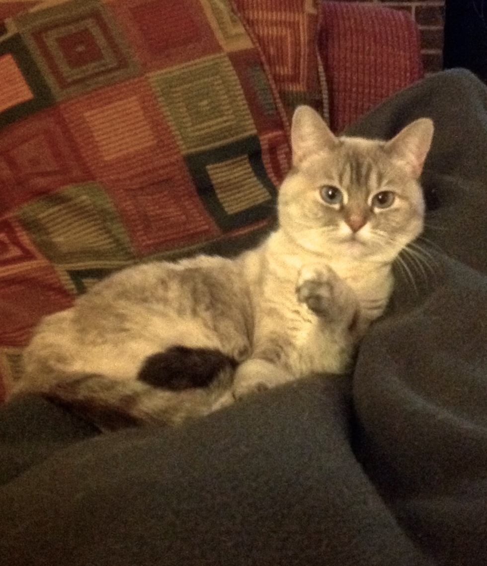 Your Pet's Bio/StoryGot her at DDF, brought her home and she ran to the basement and hid in the wall! She eventually came out as food and curiosity won out. She was very shy and afraid. We were worried about her, but she has turned into the most friendly and outgoing cat that is always ready to meet a new person. She is now the Queen of the house and is the perfect housecat in every way. This pose reminds me of Goyas “maja” painting.
