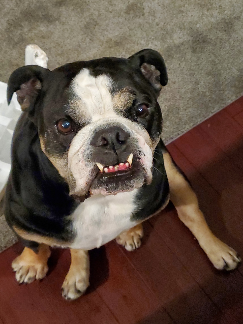Your Pet's Bio/StoryMugsy was surrendered to a rescue when he was about a year old. He was sent to be fostered as he was a little out of control. Mugsy was not abused or mistreated, but his first owners didn't know how to train a stubborn English Bulldog. He was left alone for long periods and became destructive, etc. Mugsy was fostered by a friend of mine, so I ended up adopting him. Mugsy's foster-dad worked out the kinks and trained Mugsy very well. For the past 4 years or so Mugsy has been a great companion to me although on occasion he can still be a handful, but he's so darn cute he can just skate by on those good looks.