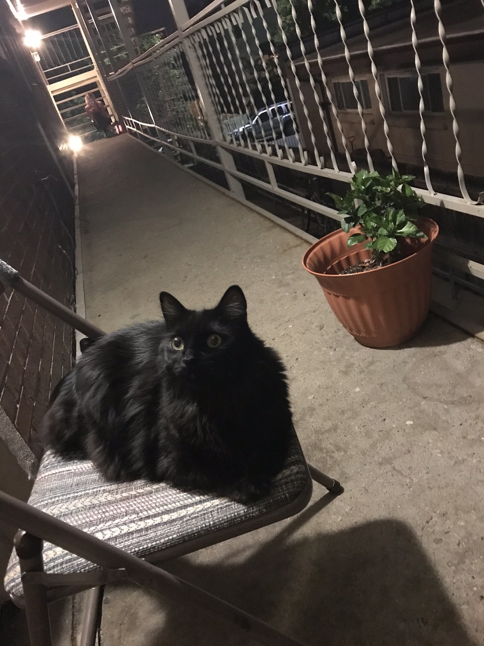 Your Pet's Bio/Story2017 Halloween I adopted Alex aka “Mr. Nice Guy!” From the black cat room. I took him home and named him Cass for my dearly departed friend. DDFL suggested that I never have him around other pets and children, for he had been returned twice already. Let me tell ya—this cat has done some damage over the years. However, nowadays he can be around other pets and is the coolest and friendliest cat I’ve ever met. He’s just like a dog—he always wants to be around me. He will walk with me at night down the block.