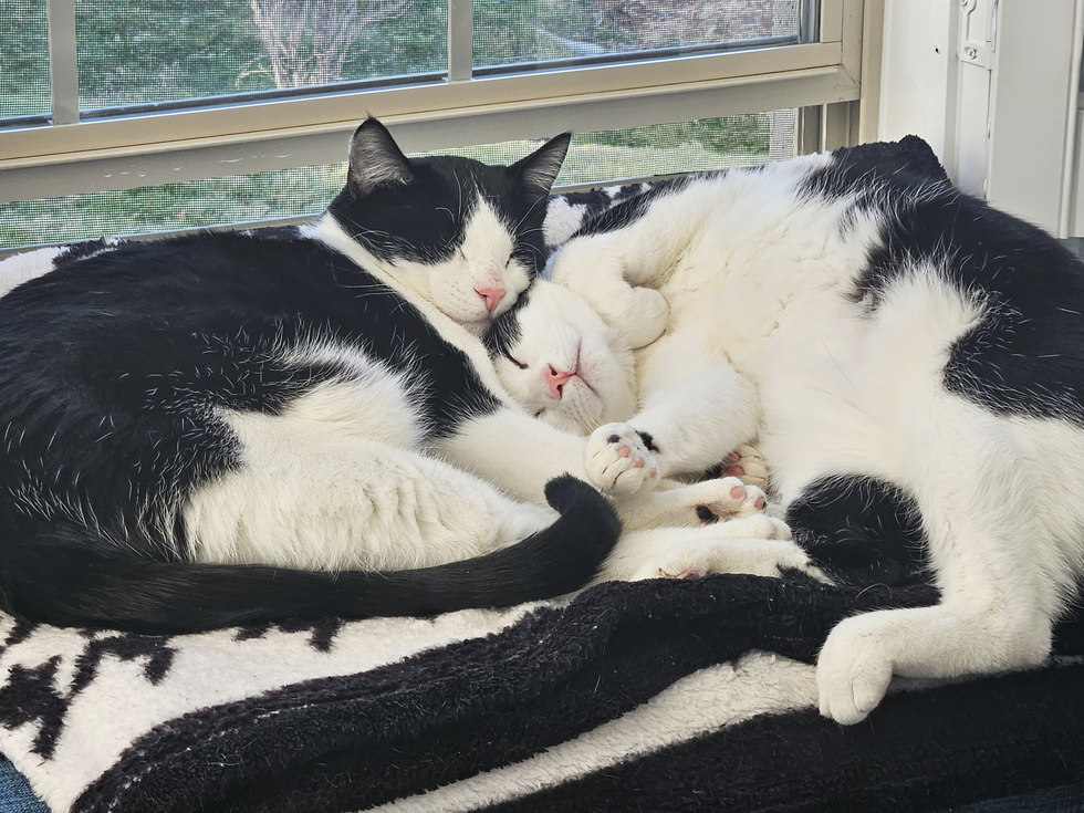 Your Pet's Bio/StoryMagni and Modi were two of six tuxedo brothers that we adopted from Foster Kitten Mama in Castle Rock two years ago. Modi is a clumsy goofball who likes to groom his human servants, and also stands on his back paws to show off his great penguin impression. Magni rules the catio with his powerful presence, frequently chatting with his bird and bunny subjects, and soaking up more sun than our solar panels. Alongside their big uncle kitty, Loki, they keep our house full of kitty glitter and happiness, and we couldn't imagine life without them!