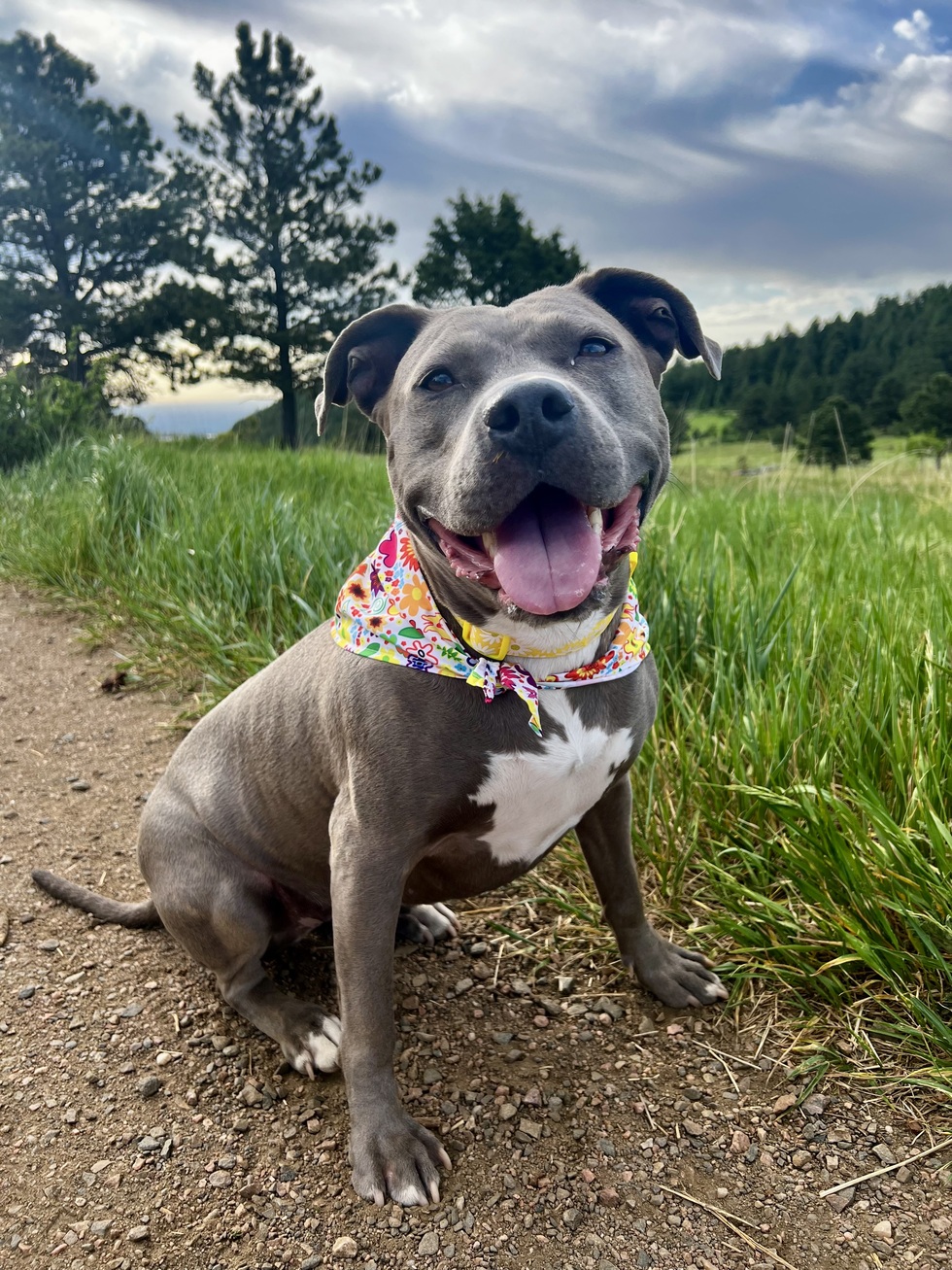 Your Pet's Bio/StoryWinnie found her fur-ever home 2 years ago after being rescued by Dumb Friends League. She loves her family and is a loyal and happy dog. She loves adventures, hikes, and going to local stores and parks to spread joy with her sweet pittie smile.