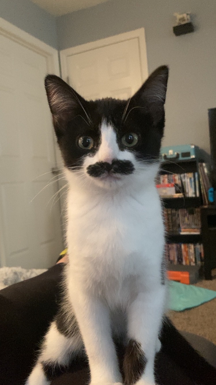 Your Pet's Bio/StorySir Winston was born with swimmer’s legs and now after taping can run around and jump as high as his sister Oreo. He is a small boy, probably runt of the litter. He loves to cuddle and wrestle with Oreo. His favorite thing to do besides fetch is to run across the upper hallway banister above the stairs that scares his human mom.