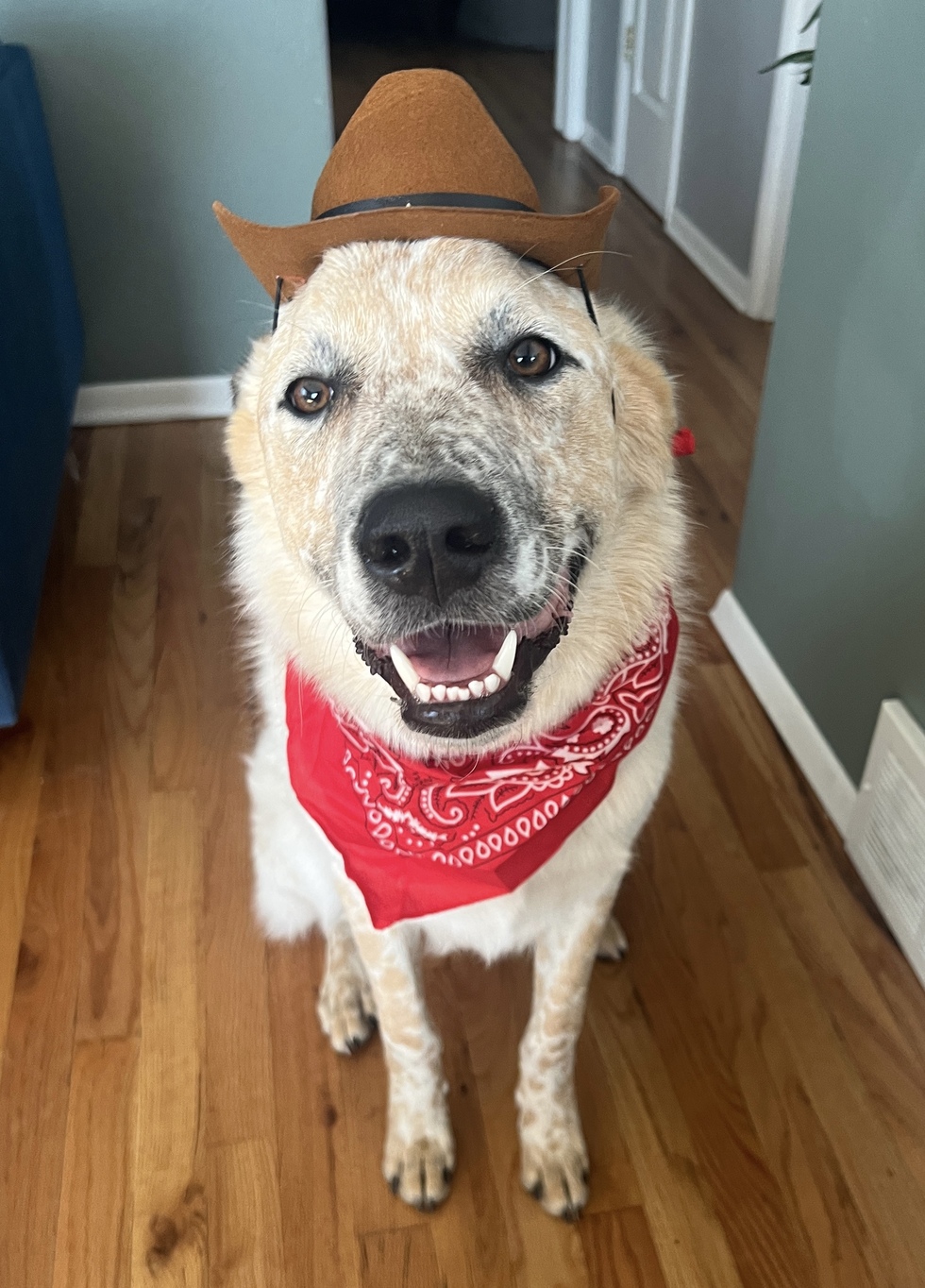 Your Pet's Bio/StoryI adopted Louie from a Colorado rescue that picked him up in Kansas. The moment I met him when he was 4 months old, he nuzzled into my neck and chose me. I thought he was a full Australian Cattle Dog, but he turned out to be half Great Pyrenees! He likes swimming, playing with his friends, protecting the house, and pushing my phone out of my hands when he wants attention.
