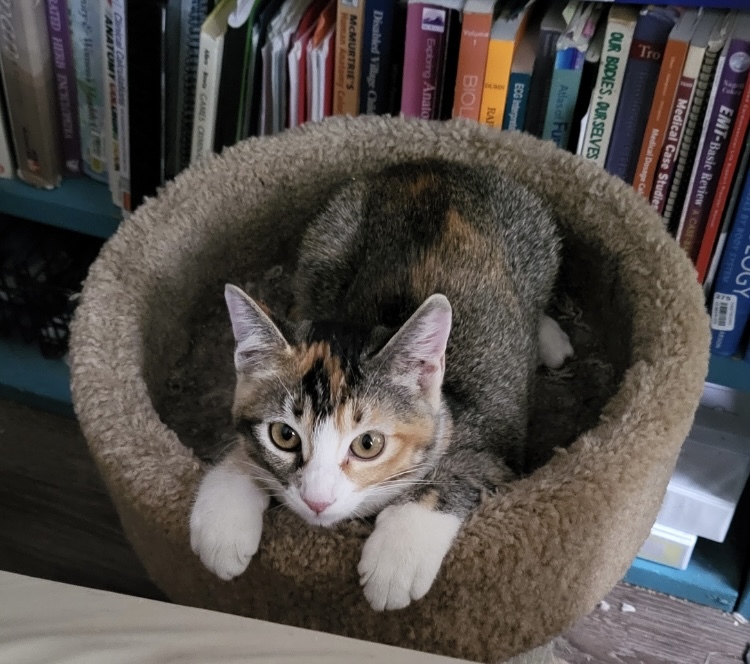 Your Pet's Bio/StoryWhen I first saw Persica’s picture on the DFL website (then named “Aspen”), I instantly fell for her. I raced over to the Buddy Center the next day to adopt her. At our visit, she was incredibly fearful, scrambling anywhere to hide—behind the computer monitor, among the wires, anywhere! Over the next few days, she slowly came out of her shell as she explored her new home. She now rules the kingdom and all that it inhabits (myself and her 3 adopted kitty siblings)! She is the most aggressive and competitive snuggler, racing me to the bedroom when it’s time to sleep. She is one of the best things to happen to me, and I am so lucky to live under her reign!