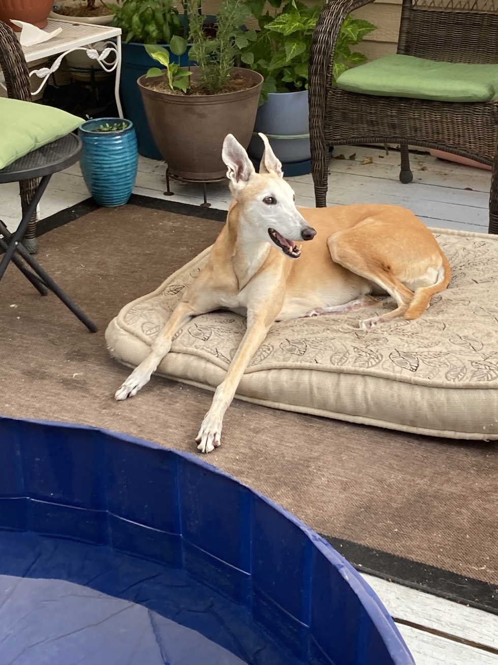 Your Pet's Bio/StoryCarmen is a retired greyhound racer rescue and the calmest, sweetest dog you’ll ever meet. She loves her leisure walks best if she can meet lots of friends in the neighborhood (human or dogs). She is now living her best life!