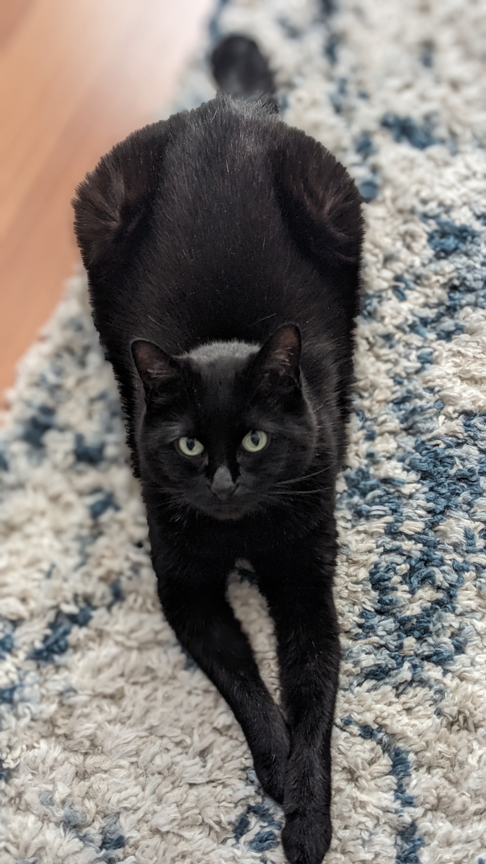 Your Pet's Bio/StoryNebula is 7 years old and was adopted from DDFL in December 2023. She's still very active and can't get enough of her many toys, bird watching in the window, and chasing random shadows. Her morning routine includes drinking water from the sink, eating a delicious variety of wet food (tuna is her favorite), and laying on the floor in an enticing way for pets, only to attack any hand that dares touch her because it's playtime! Her favorite evening activity is supervising the cooking of dinner. Although she doesn't partake, Nebula makes sure it all smells good and keeps the cook aware of their footing while in the kitchen by changing positions often. She very much enjoys being the only cat in the home and loves having a large portion of the couch to lounge on at the end of the night.