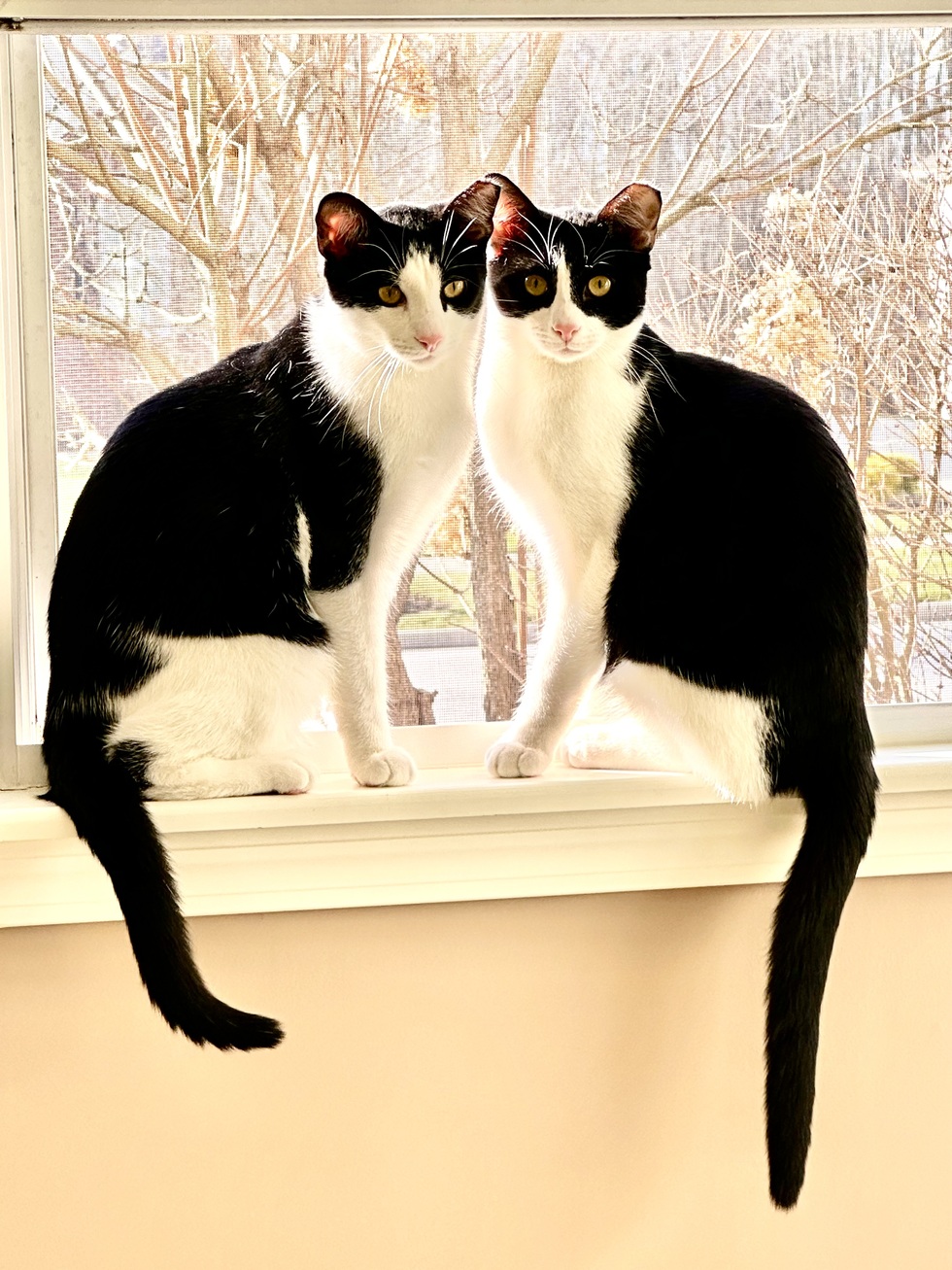 Saw these two polydactyly tuxedos advertised online and the stole our hearts from the beginning. We learned that they were turned in like a couple of old coffee mugs in a box, belonging to a heavy smoker as kittens. We learned that they had asthma a few months into joining our family. Thank goodness we are able to Treat their asthma and spoil them as much as they spoil us with their entertainment. It’s been wonderful seeing their personalities blossom.