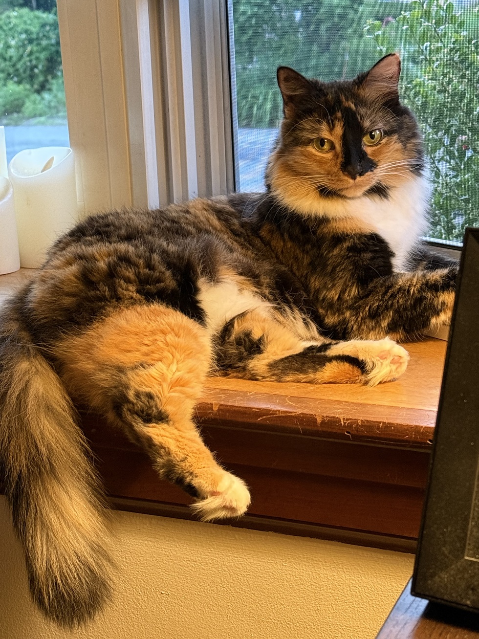 Autumn is lively brindle-calico who loves people. She keeps her feline brothers on their toes and loves to play with the laser pointer:)