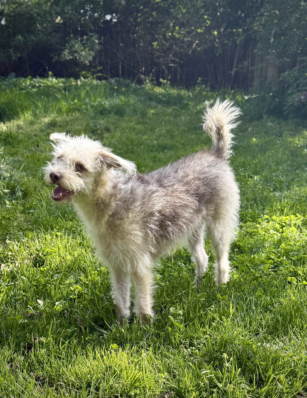 Henry Cavill greets each day with a joy we can only remember from childhood. He’s a discerning fellow who associates with cats but chases birds. He’s 25 lbs of poodle mix scrappy and love.