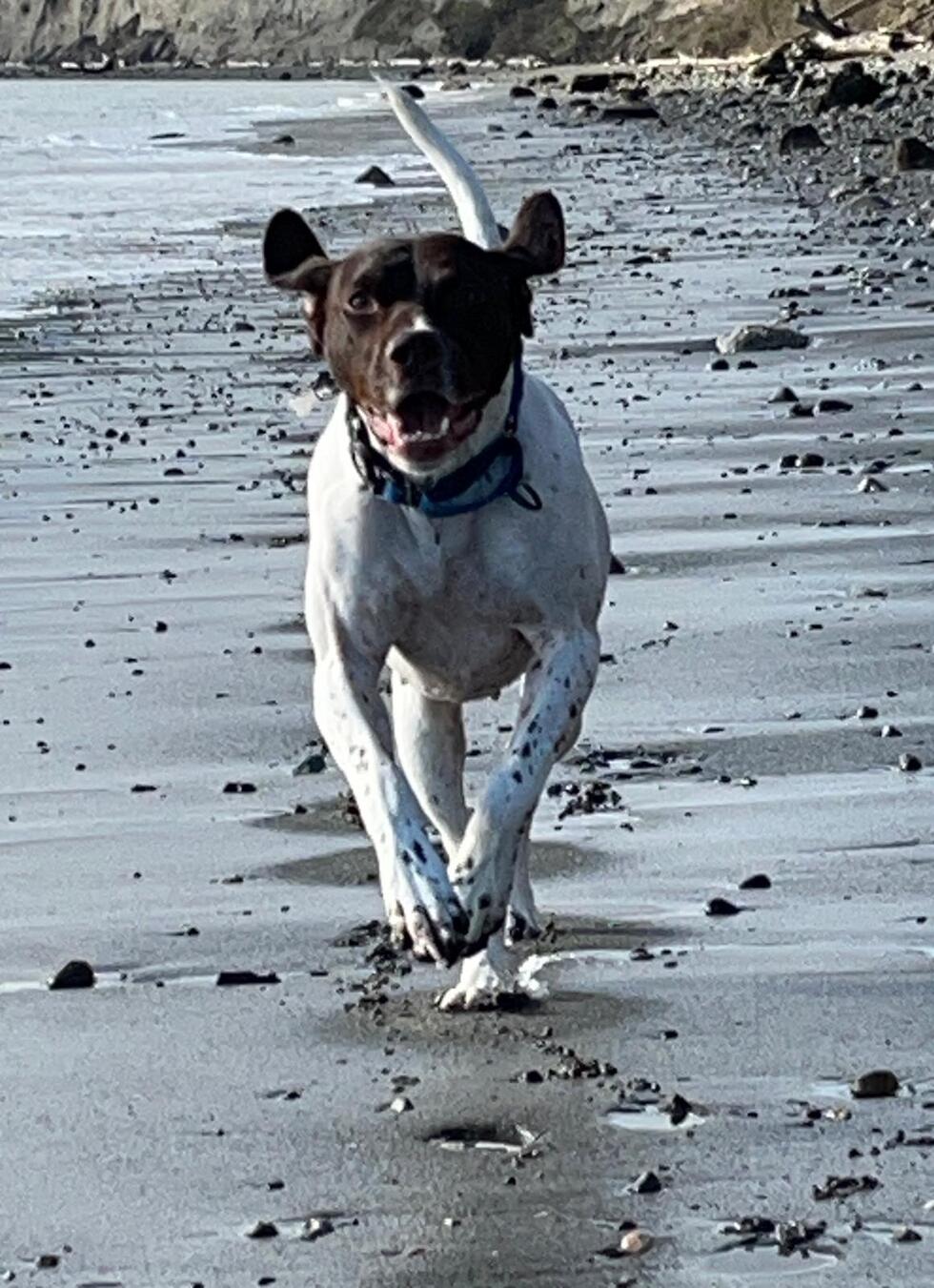 Salem is a 4ish year old rescued German Shorthaired Pointer. We adopted her from Portland Dog Rescue in May of 2025. She loves pointing at rabbits and squirrels and birds and chasing balls and is now learning nose work to keep her very active mind and body busy!