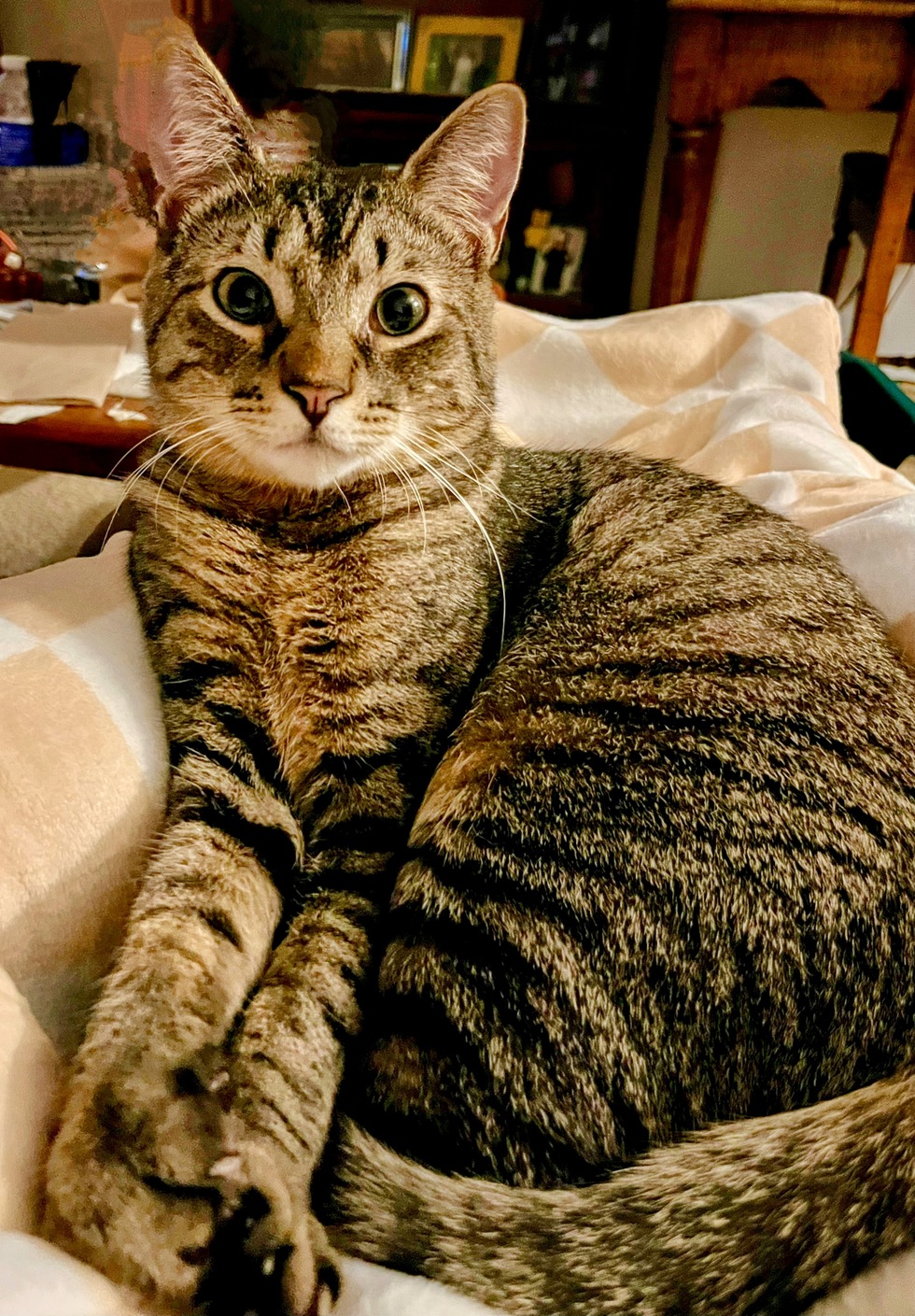 Jude (FKA “Roy) is absolutely a wonderful cat, recently honored with the title, “ECD Alum”. Jude will fetch his toys and return them to you as long as you are willing to throw! Jude strikingly gorgeous with his tiger coat and orange underbelly. Jude will tell lucky hoomans his ancestry tracks back to a regal UE Tiger, hence the orange belly. Jude deserves all the votes, because he is magnificent! Jude thanks you for your vote!