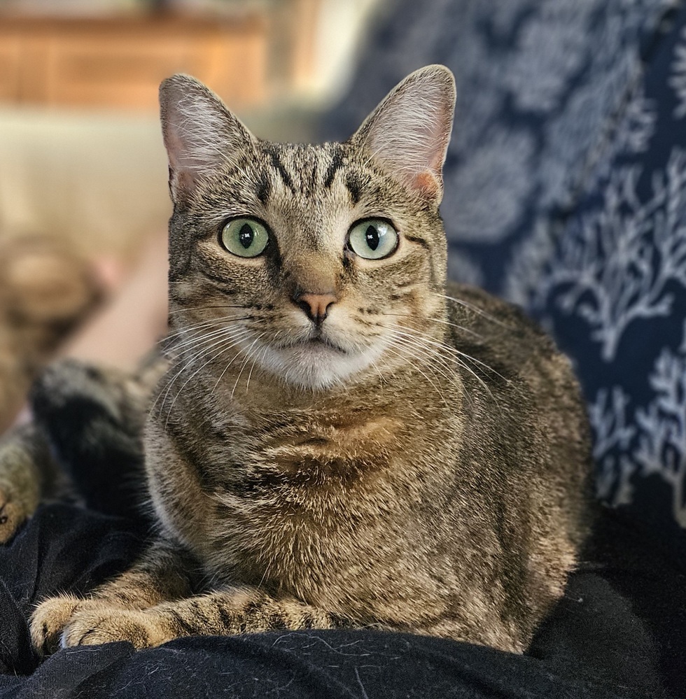 Eddie is quite a character! He has endless energy and loves to climb, run, and play all day. He can be quite mischievousness and loves to prowl around the house. One time he stole an entire slice of pizza and ran off with it! He enjoys sneaking up and pouncing on his brothers and sisters. During the day he is full of spunk, but at night he can always be found snuggled close to his hooman mom.