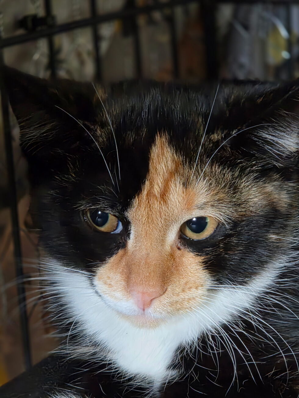 Callie was trapped in an Endwell neighborhood that has a large cat colony. She was probably 3 months old.  I got her spayed and I have been working with her to socialize her. I have been rewarded with her purrs as she is beginning to truly enjoy being petted and playing with my other cats.