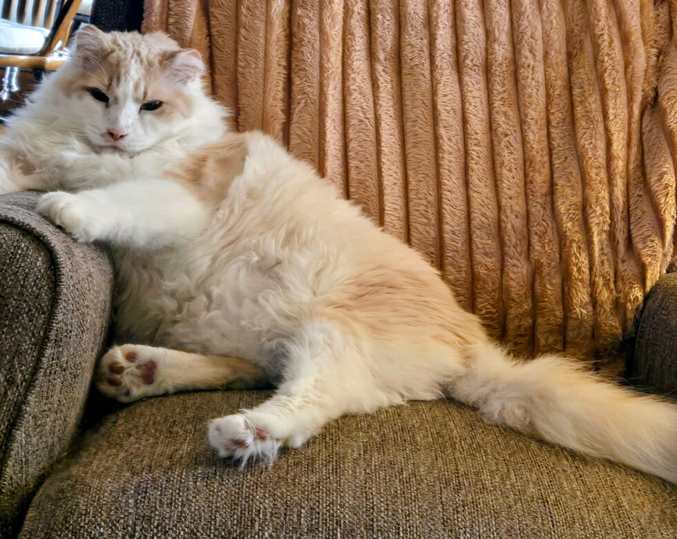 Scruffy was turned loose in my neighborhood—-He was terrified of people because someone had cut his ears off! My neighbor trapped him and asked if I would adopt him—-He hid under furniture for two years—-now he is social and loving and  everyone who visits me falls in love with him