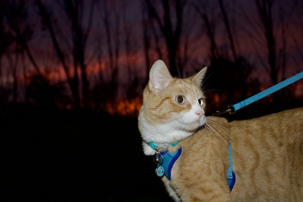 Honey Mustard likes to imagine himself as a vicious jungle predator while on his sunset walks. He’s nearly 1 year old and was adopted from Every Cat’s Dream in February 2025.