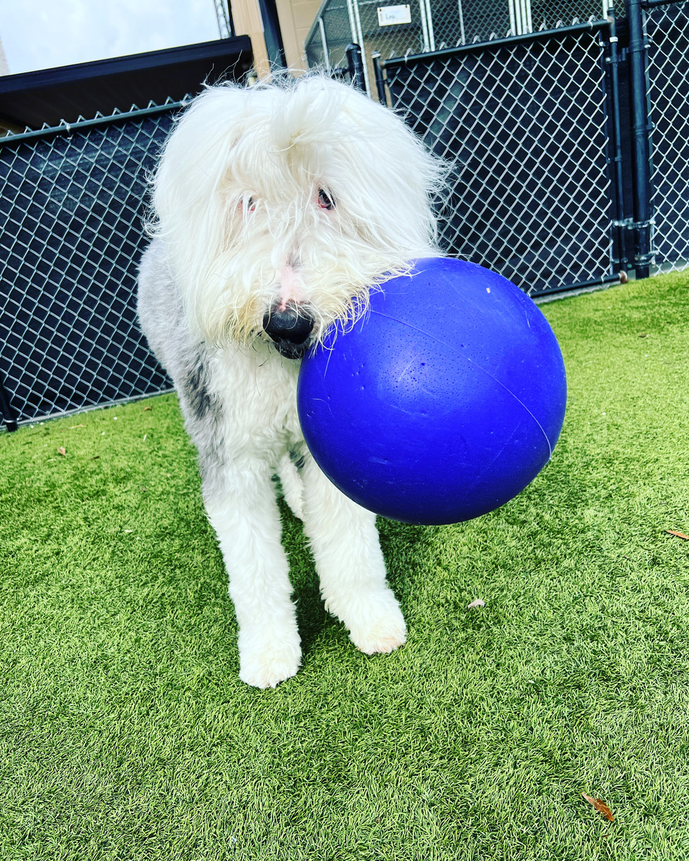 Geoffrey is a deaf Old English Sheepdog but knows many signs including bang (play dead), shake, spin, roll over, and give a kiss 😘!