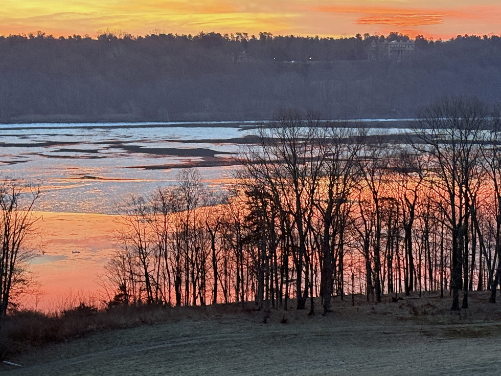 Photograph DescriptionThe sunset plays off the ice floes on the Hudson throwing yellows, oranges, and blues.