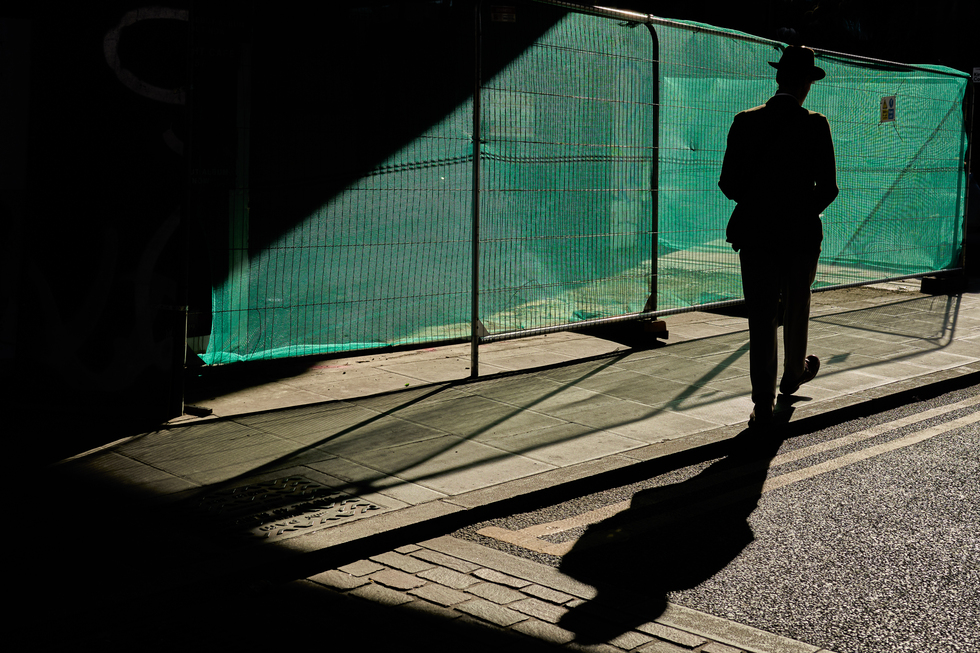 Photograph DescriptionWhen this gentleman passed me on the street, he seemed to be counting money. He was impeccably dressed, and I waited until the shadows from the overhead pass perfectly framed him to make the photo.