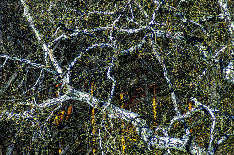 Photograph DescriptionA dream of the environmental artists Christo and Jeanne-Claude was realized for 16 days in February, 2005. The geometric grid pattern of the hundreds city blocks surrounding Central Park was reflected in the rectangular structure of the commanding and sculptural saffron colored vinyl poles, while the serpentine design of the walkways and the organic shape of the bare branches of the trees was mirrored in the continuously changing rounded and sensual movements of the free-flowing nylon panels moving in the wind. I was lucky enough to visualize the event from many vantage points. This image was an aerial view from the rooftop of the Metropolitan Museum of Art.