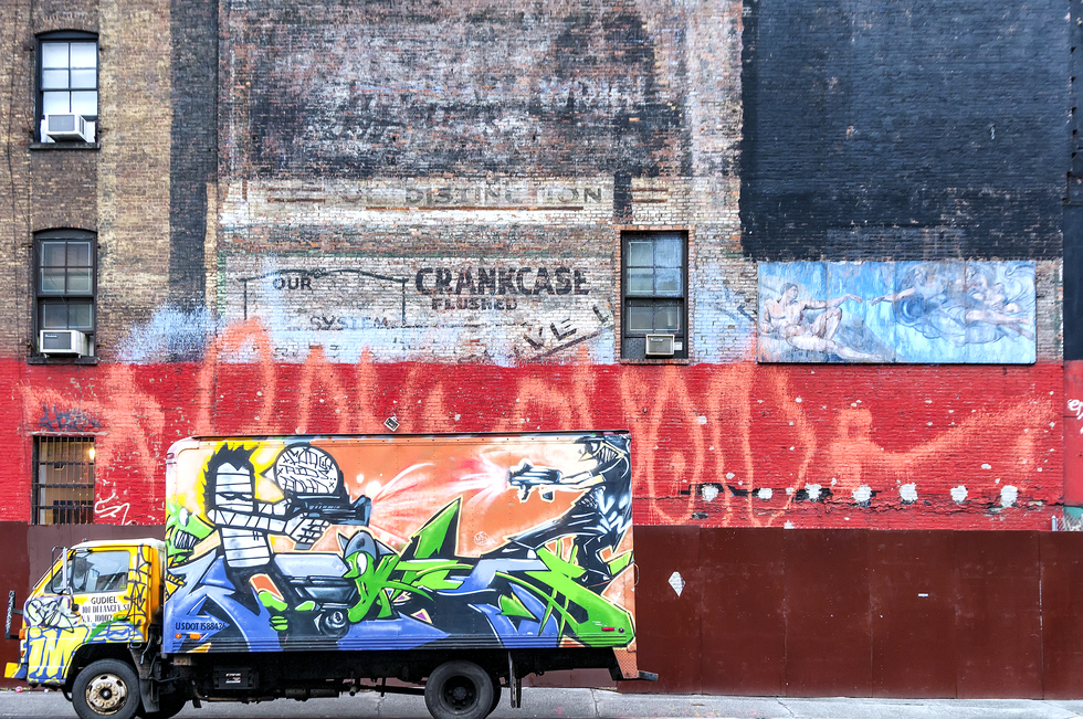 Photograph DescriptionAs I visualize a street scene, it is usually fleeting and probably includes people in some type of movement or expression. The panoply of images without a human presence also exists but for having engaged a human touch. My images of urban environments can be composed of either or both. This image ties together two opposing concepts involving two types of human connection and so was aptly named. That graffiti and fine art can engender emotional responses, even in opposition, is a wonderful human trait.